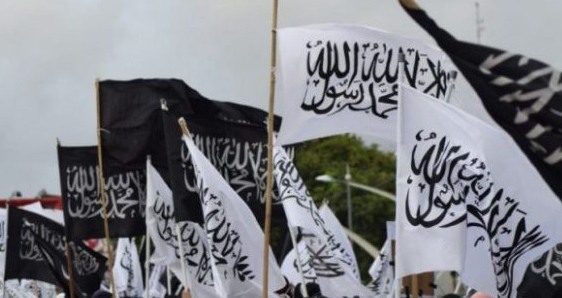damai tersebut, massa membawa bendera tauhid, bendera merah putih dan bendera
