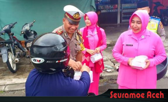 Satlantas dan Bhayangkari Bagi-Bagi Takjil Kepada Pengendara