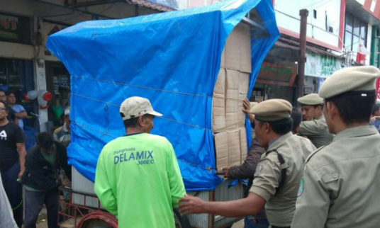 Satpol PP Bersama Disperindagkop AbdyaTertibkan Pedagang Kaki Lima