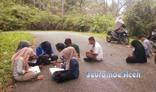 "Untuk mendapatkan jaringan internet, kami terpaksa kuliah dijalanan puncak gunung,” katanya kepada Seuramoeaceh.com, Senin (06/04/2020).