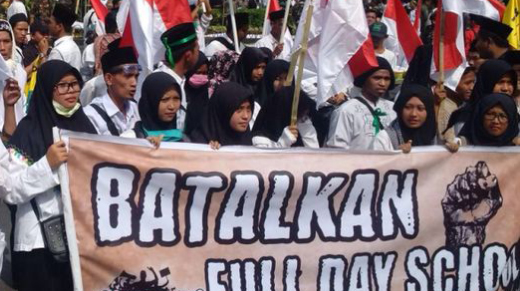 Alasan mereka beragam, salah satunya adalah soal agama. Menurut mereka, bila full day school benar-benar diterapkan, waktu bagi anak-anak untuk belajar agama khususnya ngaji hanya sedikit.