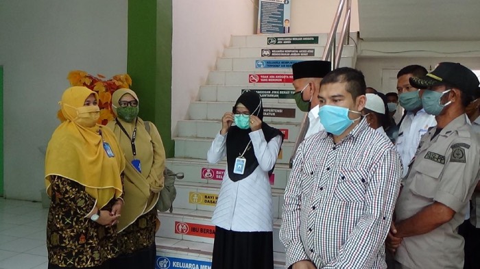 Terlihat Sekda TR Johari mengajak pasien yang telah sembuh itu berbincang dan pasien tersebut merespon normal.