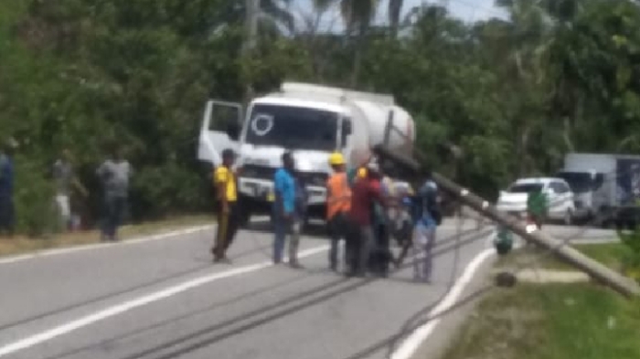 Tidak ada korban jiwa, namun lalu lintas sempat tergangu di tempat tumbungnya tiang listrik tersebut.