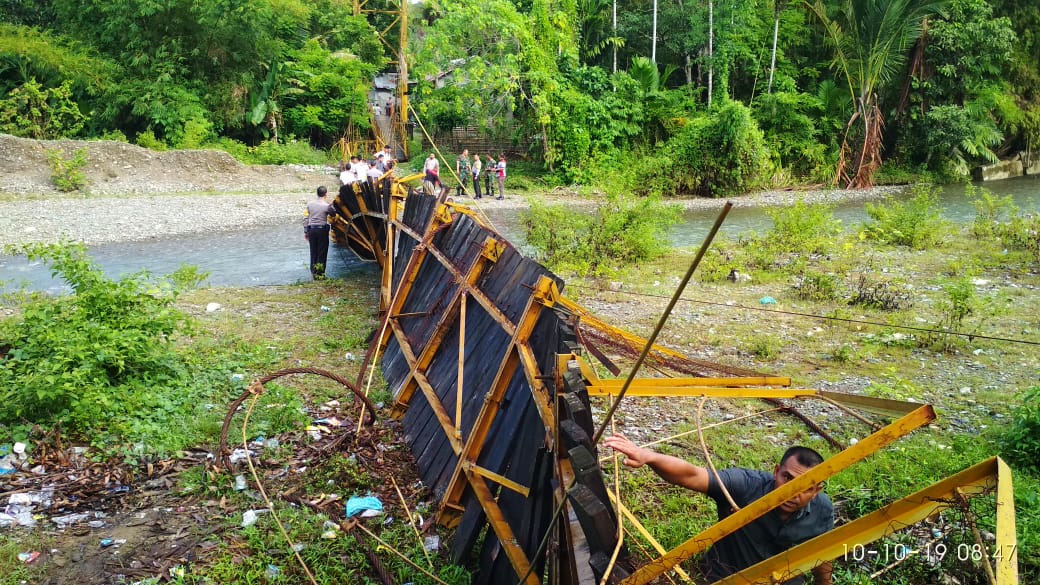 "Jembatan itu kalau tidak salah sudah berumur 35 yang dibangun tahun 1988 silam, karena sudah terlalu lama, kondisi tali besi penahan jabatan sudah berkarat," imbuhnya. (Julida Fisma)