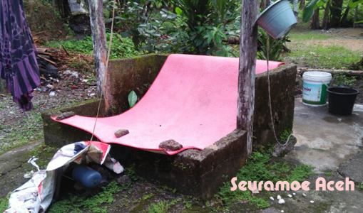 Akibatnya, iapun menutup sumurnya menggunakan tikar plastik karena berada diluar rumah dan terbuka.