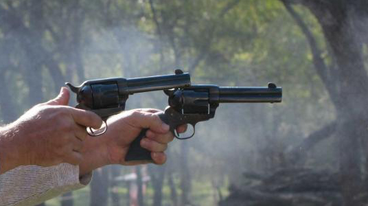 pria bersenjata senampan melancarkan aksi penembakan tersebut.