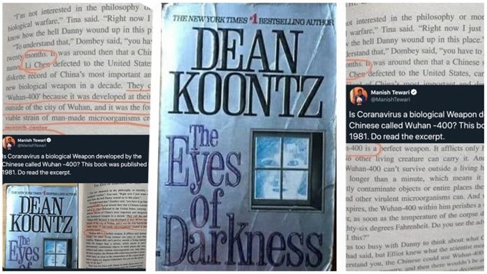 Menurut buku tersebut, virus itu bernama Wuhan-400, mirip dengan Virus Corona yang pertama kali menyebar di Wuhan, China.