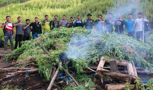 Pemusnahan tanaman haram itu dilakukan oleh personel Kodim 0113/Gayo Lues bersama Badan Narkotika Nasional (BNN) setempat, Ahad 12 Mei 2025.