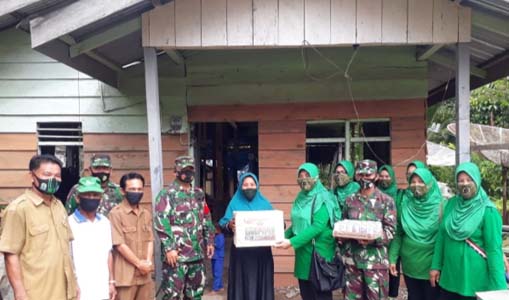 Dandim dan Ketua bersama anggota Persit KCK Cab. XXXIII Dim 0115/Sml, Senin (21/09/20) meninjau proses renovasi RTLH di Desa Lugu Kecamatan Simeulue Timur.