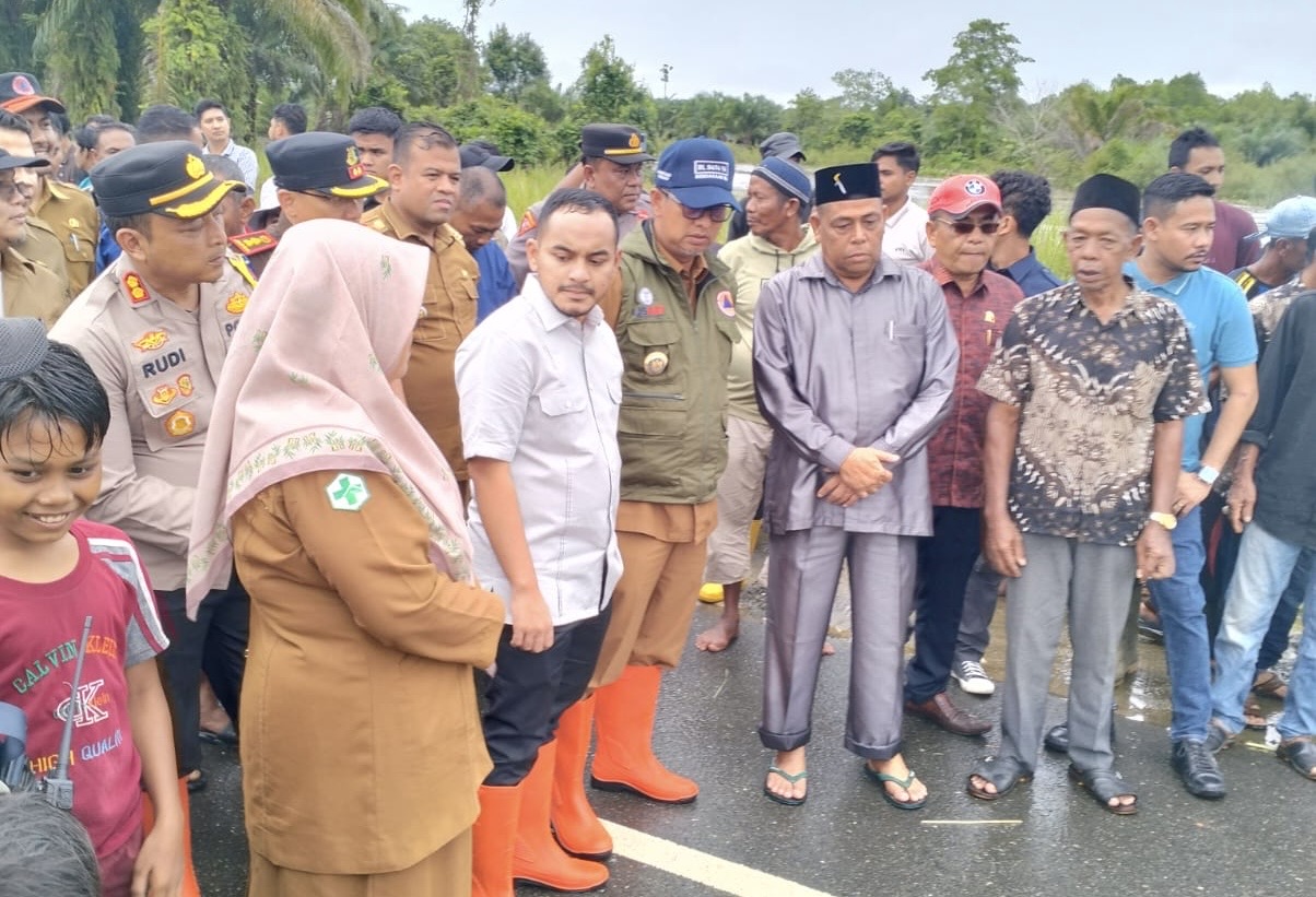 Selain itu, Pj juga turut melihat langsung kondisi jembatan di Desa Alue Siron, Kecamatan Tadu Raya, yang putus total akibat banjir tersebut.