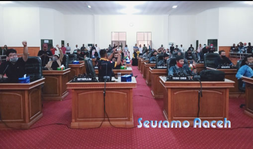 Pantauan Seuramoeaceh.com, seluruh kursi pimpinan dewan mulai kursi Ketua, dan Wakil ketua DPRK serta kursi anggota dewan di duduki pengunjuk rasa.