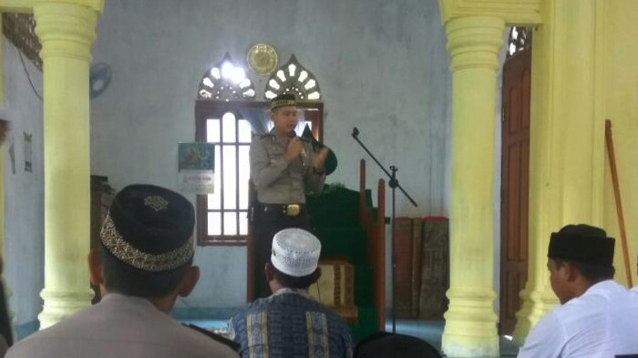 Pesan Kantibmas itu disampaikan Ipda Noca saat ia dan anggota (Babinkantibmas) melaksanakan sholat Jumat di Masjid Nurul Mah'rifah Desa Tuwi Buya Kecamatan Darul Makmur Nagan Raya, Jumat (06/09/2019).