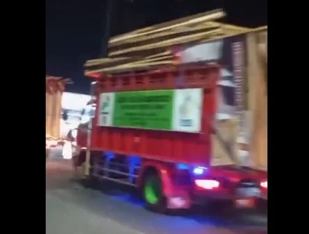 SEURAMOEAceh l Sebuah video menampakkan baliho Prabowo Subianto-Gibran Rakabuming viral di media sosial. Baliho itu diangkut menggunakan truk belogo perusahaan BUMN.